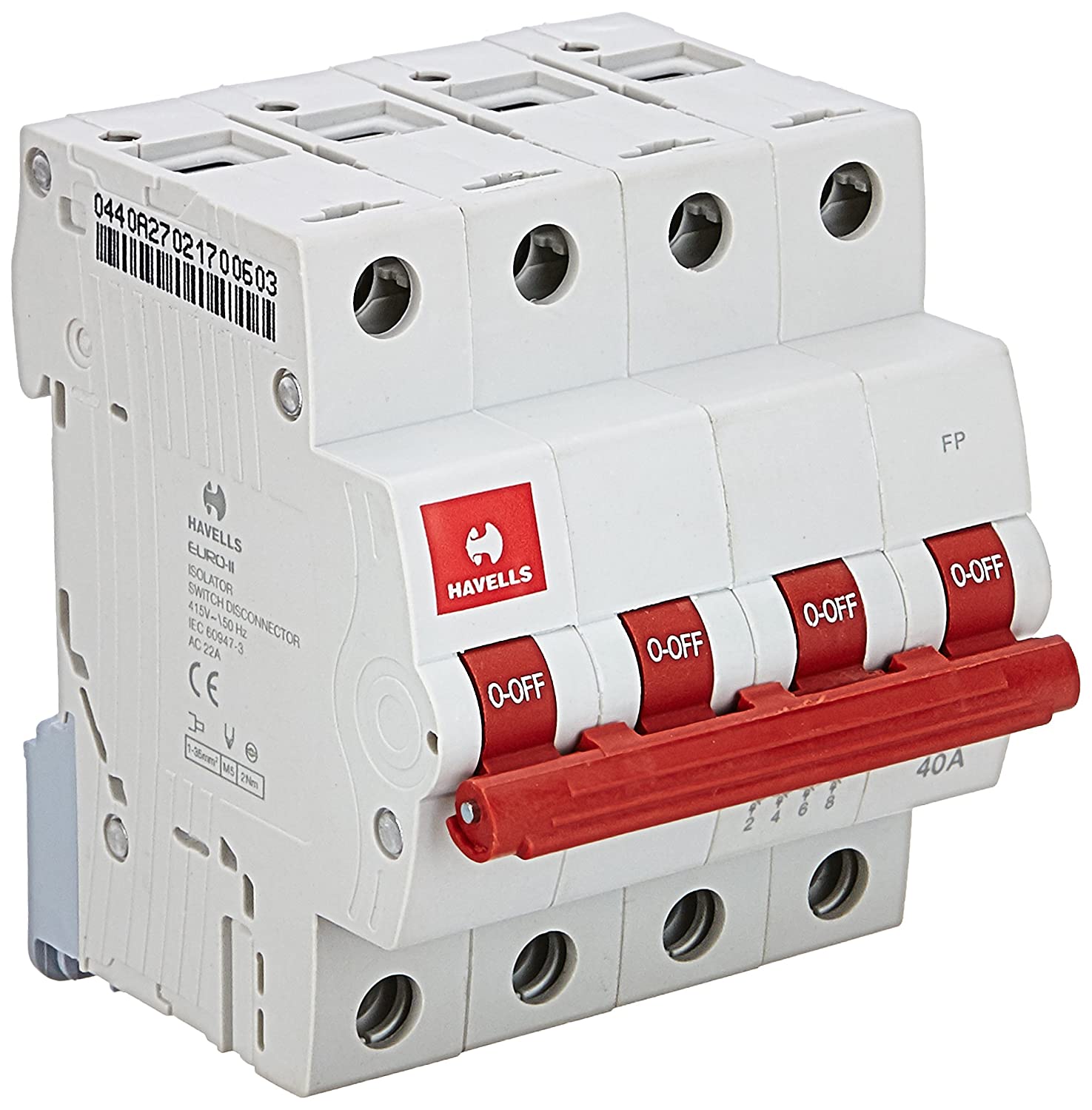Havells DHMGCTNF063 PVC Plastic 63A MCB TPN C Curve (White)