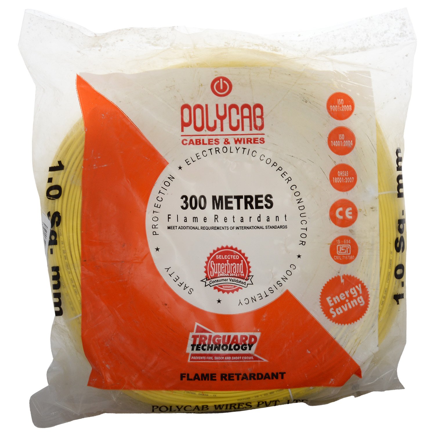 Polycab Flame Retardant Single Core Copper Cable 1.0 Sq Mm Wire (Yellow)