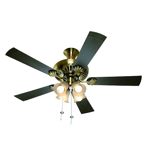Usha Fontana Maple 1250mm Ceiling Fan with Decorative Lights (Antique Brass), Black